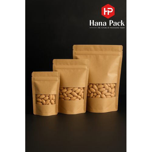 HANA PACK Brown Kraft Stand Up Zip Pouch – (PACK OF 100pcs)